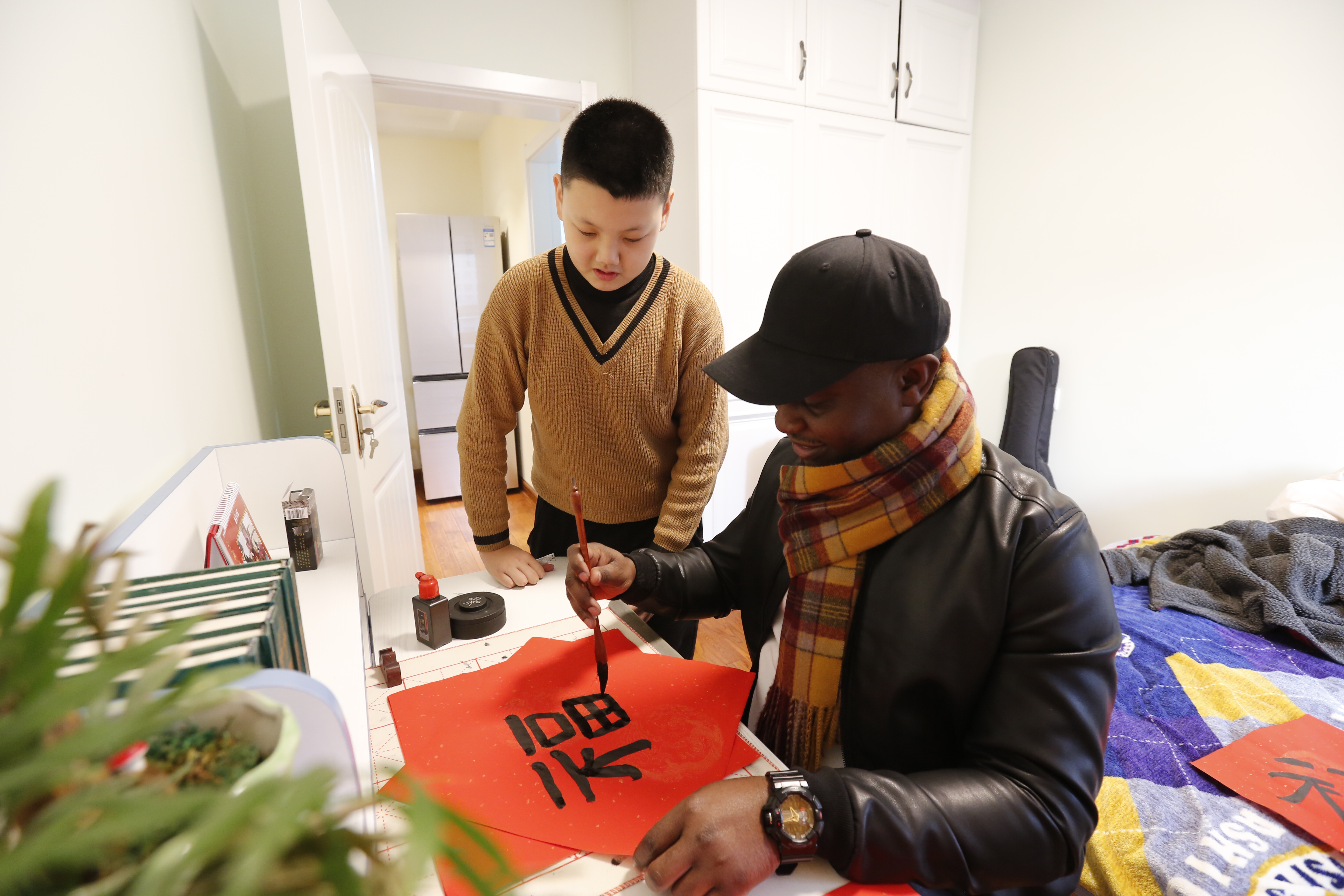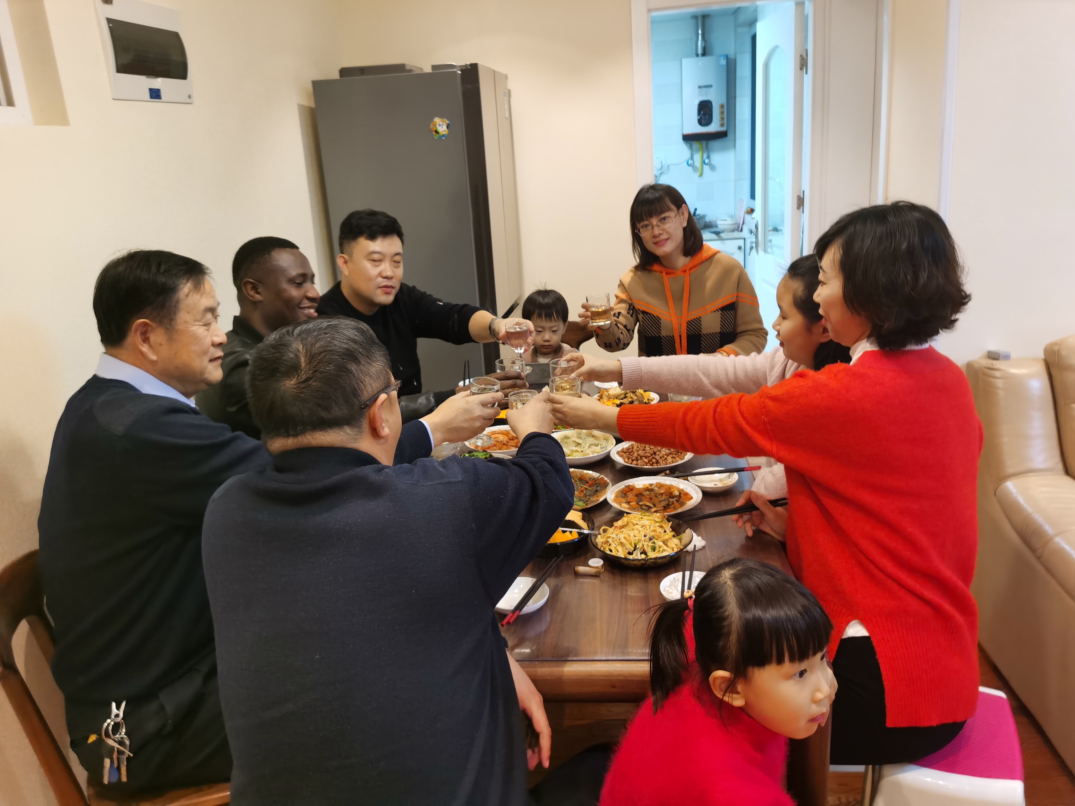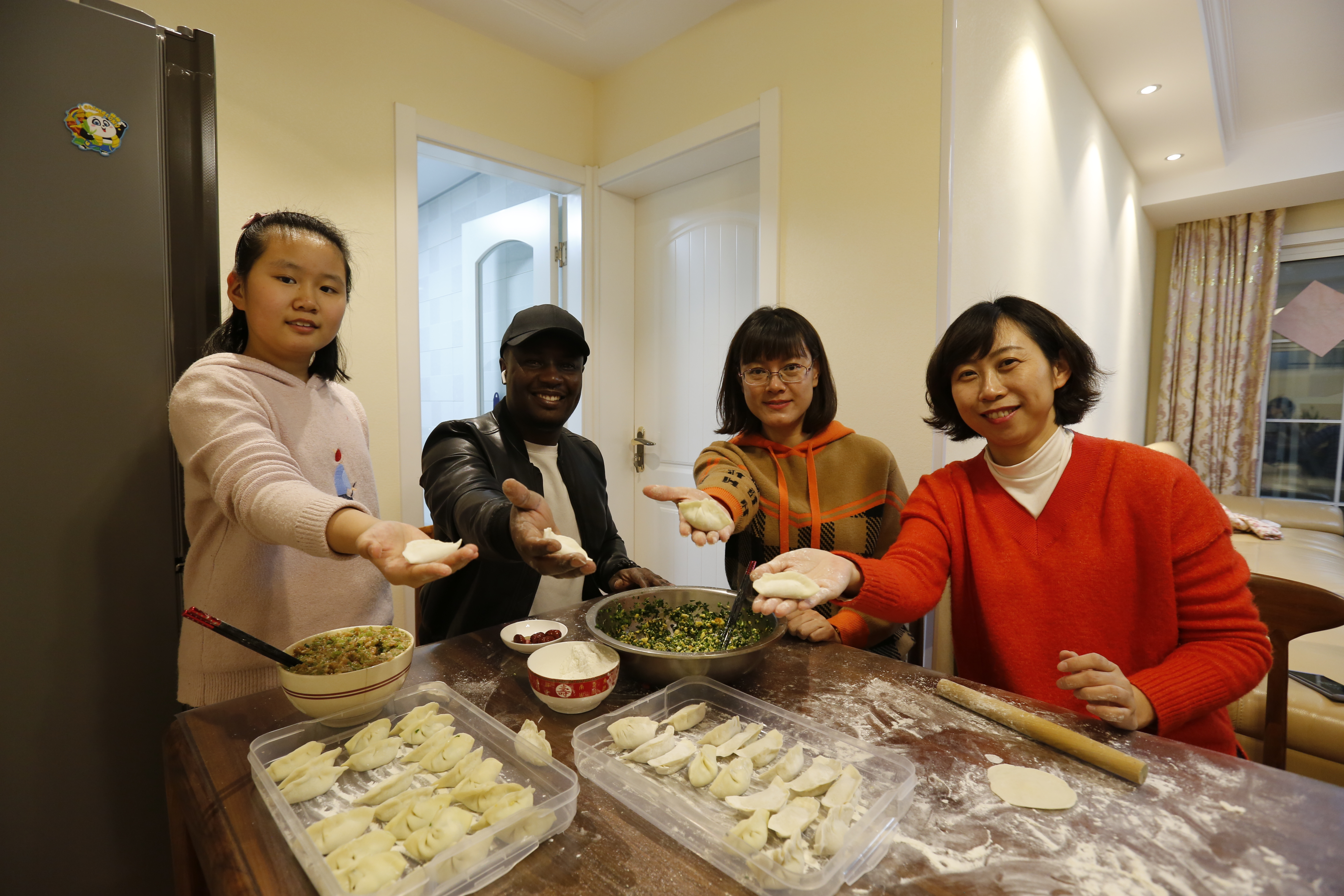 K8周宁老师是教师支部的组织委员,同时还负责K8国际交流合作工作,平日里与高乐老师接触较多。当了解到高老师今年再次一个人留在公司时,她真诚邀请高老师和留淮的亲戚们到自己家中以中国传统方式庆祝新年的到来。写春联、品茶道、包饺子,让高老师感受浓浓中国味儿的新年,感受中国传统文化。