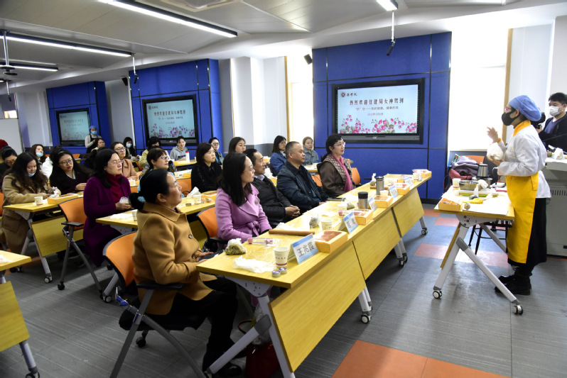 首先,选用了K8乡村振兴合作基地的玫瑰花和瓜蒌作为原料,制作健康美味的司康,大家在指导老师的讲解和演示下纷纷动手DIY,做出了各式各样造型的产品,烘烤后装盒与家人分享。紧接着肖建琪老师为大家详细介绍了紫草膏的制作成分、功效、适用范围。因其可以舒缓皮肤创伤,缓解蚊虫叮咬而引起的肿、痛并快速止痒,是春夏季节家中常备物品,深受广大女神的喜爱。在等待甜点烘烤的过程中,安全用药团队严艾文老师以“胃病健康用药指导”为题,从胃病介绍、药物治疗、养胃保健和养胃误区四个方面给大家介绍了胃病相关基本知识,重点介绍了幽门螺旋杆菌的检查、治疗与预防。宋月雯老师以“高血脂症”为主题,重点讲解了高血脂如何自我诊断、其危害与并发症以及如何进行药物治疗和日常护理,着重强调了动脉粥样的形成、危害及预防。两位老师以扎实的理论功底、丰富的讲授经验给女职工们带来了一场生动、实用的健康讲座。