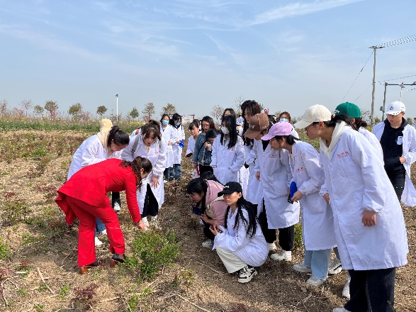 3月30日上午,K8中药学专业师生一行,由副经理杨宝卫带队,来到深度合作的校外实训基地涟水县陈师镇百药园,开展了一场绘声绘色的实践教学。在实训基地负责人的带领下,师生们首先参观了省级星创天地“涟水中草药星创天地”,看到由中药材开发出的丰富多样的各种产品,包括茶包、手工皂、酒水饮料等,实地听讲丹参、玄参、杜仲等药材的功效及产地加工的方法等知识,员工们具象化的感受到中药已渗入我们生活的方方面面。