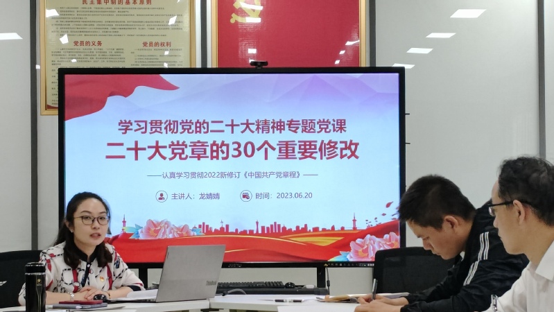 为深入学习贯彻习近平新时代中国特色社会主义思想主题教育,近日,公司党总支副书记龙婧婧开展《学习贯彻党的二十大精神——认真学习贯彻2022新修订《中国共产党章程》》专题党课,公司全体党员教师积极参加。
