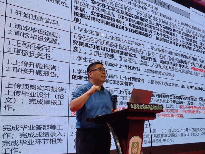 大会上,葛驰宇副经理指出,实习是专业学习中至关重要的环节,是将理论知识转化为实践能力的关键一步。他强调了实习期间各方面的注意事项并对实习期间的行为规范做了详细说明,提醒同学们要注重团队合作,学会与领导和同事良好的沟通,同时也嘱咐同学们在实习期间要注意自身安全,自觉提高防诈骗意识。如遇到意外伤害或火灾等紧急情况,应保持冷静、沉着应对,及时采取有效的应急措施,出现任何问题都要向辅导员和实习指导老师及时汇报。