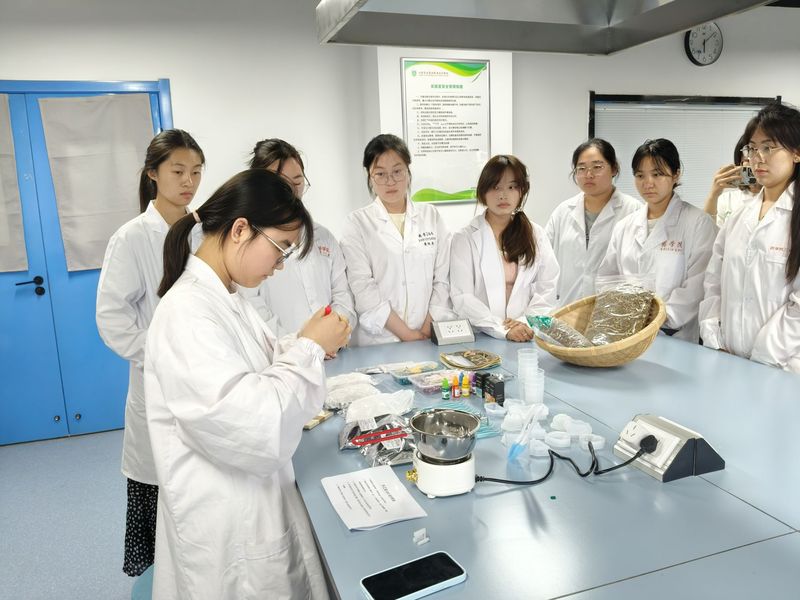 以天然草本为媒,以手作为桥,开启一场特别的自然疗愈,在植物芳香中感受身心平衡。活动中,中药学专业优秀公司邵雨欣同学为同学们讲解药皂的基本成分、功效(如茶树精油可抗菌、薄荷脑可清凉提神)以及药皂的制作过程、工具的使用等。现场的同学们根据自己的喜好和需求,思考着想要制作的药皂形状、添加的成分和功效,进行创意构思。比如,为改善睡眠,可以制作添加洋甘菊的圆形药皂。