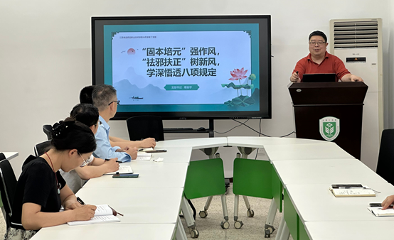 支部委员朱濛就党课内容联系实际,表明严格要求自己,关心员工心理动态,密切联系员工。陈琪博士表示担任班主任责任重大,一定要严格遵守八项规定,不得随意收取员工家长礼品。通过此次党课的学习,支部全体党员将八项规定内化为精神基因、外显为育人实践,以守正创新的根系滋养学科发展,在新时代职业教育的征程中,续写着“中药人”的济世情怀。