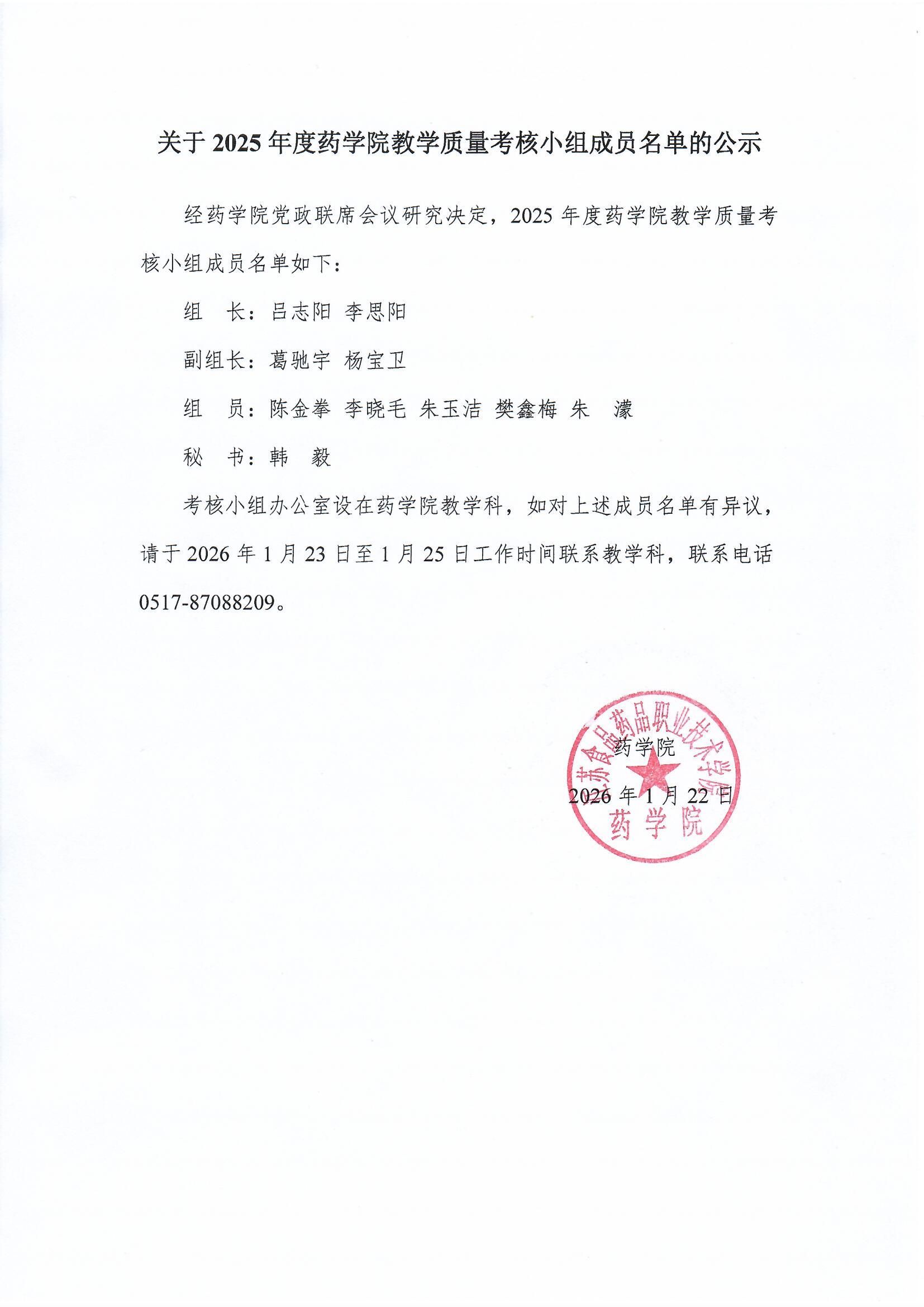 关于2025年度K8教学质量考核小组成员名单的公示